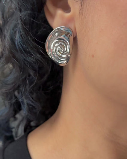 These high-shine swirl studs bring instant edge with their sculpted, molten-metal vibe.